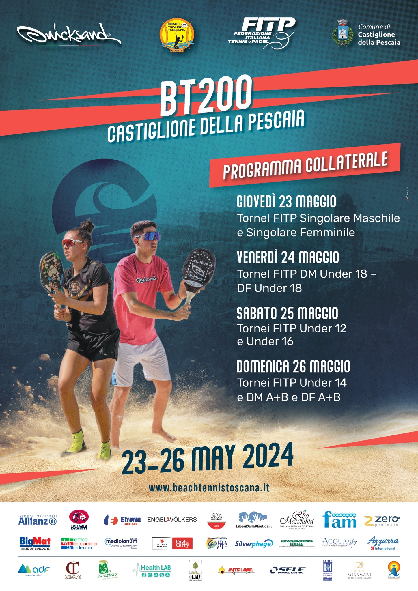 Sempre dal 23 al 26 maggio l’area del piazzale Maristella sul lungomare castiglionese diventerà una piccola cittadella dello sport internazionale ospitando il Torneo Internazionale di Beach Tennis BT200, uno dei tornei più importanti del calendario continentale ed intercontinentale per questo sport. Saranno 150 gli atleti provenienti dall’Italia e dall’estero, che si contenderanno un montepremi di 15.000 dollari, oltre 70 coppie di giocatori e giocatrici tra i primi 20 del mondo. Insieme alla competizione principale, si svolgeranno tornei collaterali per atleti amatoriali con oltre 200 partecipanti