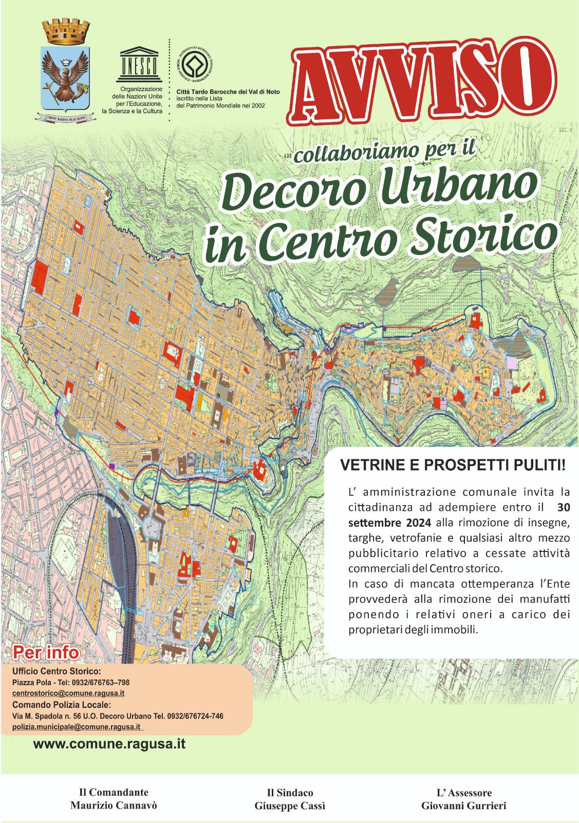 Pertanto, l’Amministrazione Comunale invita la cittadinanza a rimuovere insegne, targhe, vetrofanie e qualsiasi altro mezzo pubblicitario relativo a cessate attività commerciali del Centro storico”.