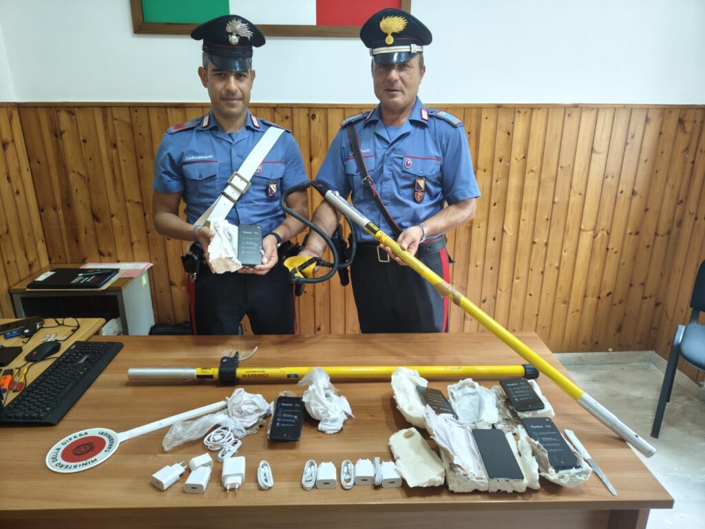 anche 6 cellulari con relativi caricabatteria nonché una fionda gigante con