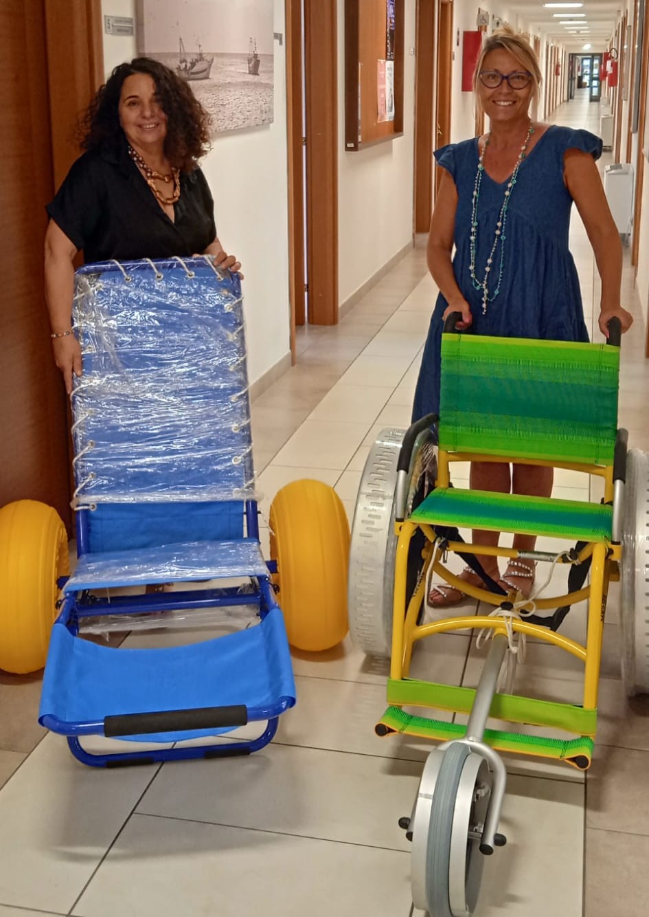 I nuovi ausili forniti sono una Carrozzina Job ideale per spostarsi sulla spiaggia, anche in presenza di ciottoli, ghiaia e sterrato, dotata di ruote impermeabili per accedere al mare ed una Carrozzina Sand&sea con ruote Sand&street in gomma piena e alluminio ideali per spostarsi autonomamente riducendo lo sforzo di spinta sulla sabbia e anche immergersi completamente in acqua per una nuotata.