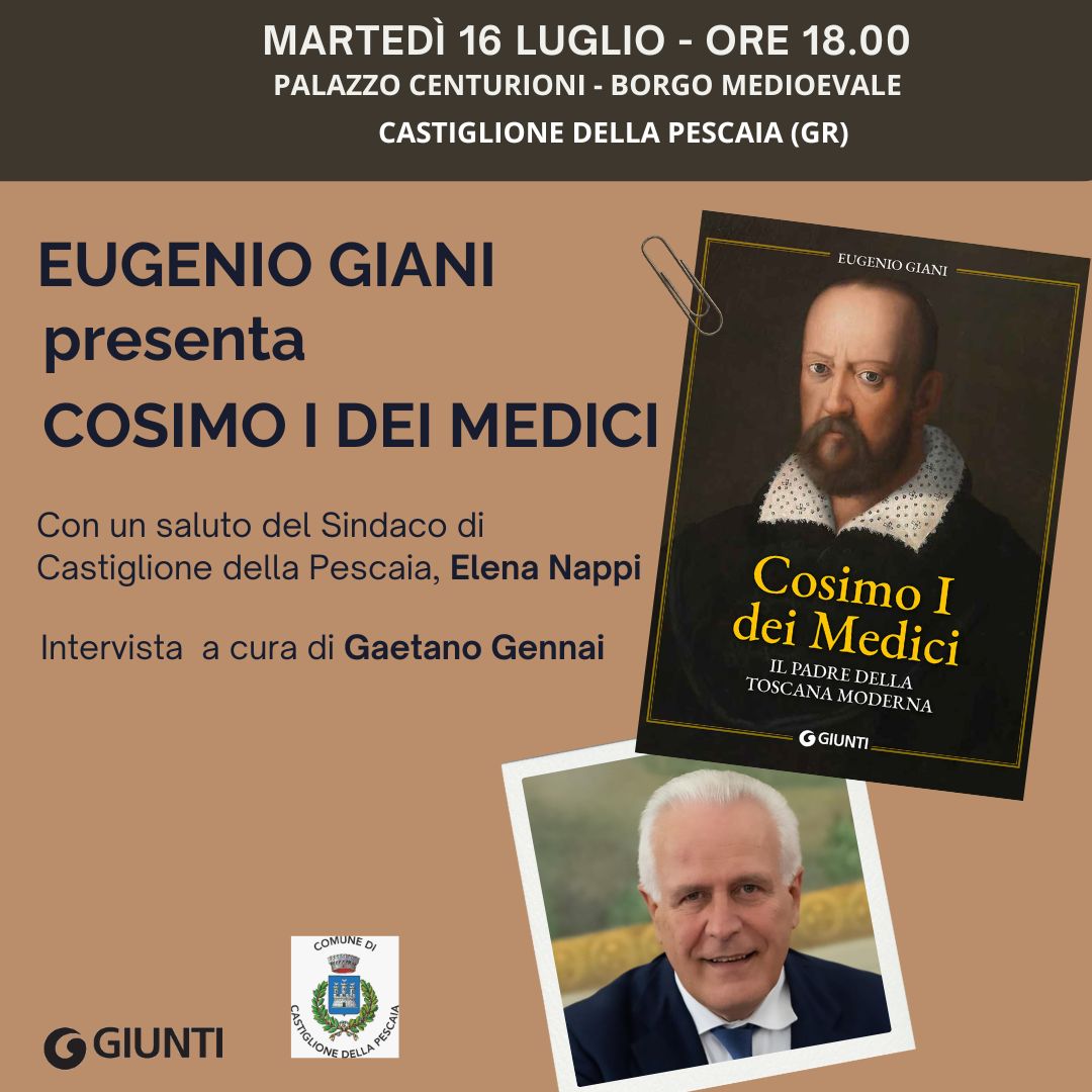 Il presidente della Regione Toscana Eugenio Giani presenta a Castiglione della Pescaia il suo libro “Cosimo I dei Medici – Il padre della Toscana moderna” ( Giunti ed. ).