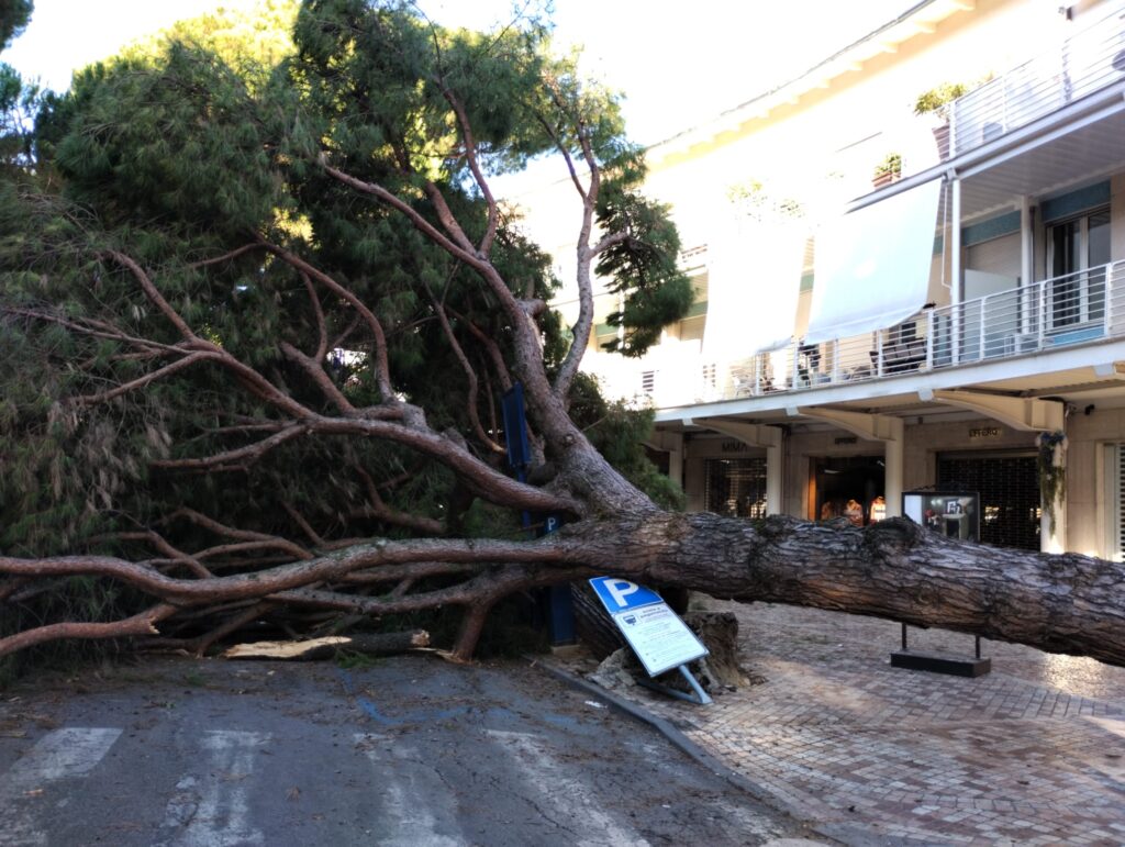 subìto un cedimento improvviso, finendo la sua caduta su un altro pino domestico e su un
