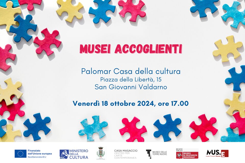 Si terrà venerdì 18 ottobre alle ore 17 a Palomar Casa della Cultura di San Giovanni Valdarno la giornata dedicata al progetto sperimentale “Musei Accoglienti. Per una nuova esperienza di visita al Museo delle Terre Nuove e a Casa Masaccio”, sviluppato dal Comune di San Giovanni Valdarno e da Mus.e nell’ambito del progetto teso alla “Rimozione delle barriere fisiche e cognitive in musei e luoghi della cultura”, finanziato dal Ministero della Cultura con i fondi dell’Unione europea NextGenerationEU. Sarà un pomeriggio di dialogo aperto e confronto sui temi dell’accessibilità e dell’inclusività in ambito museale.