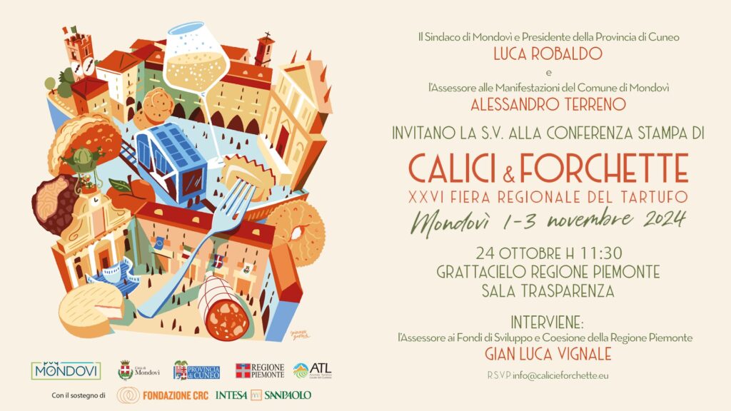 (AGENPARL) – mar 22 ottobre 2024 Gent. colleghi, su richiesta degli organizzatori, si inoltra l’invito alla Conferenza Stampa di presentazione dell’evento “Calici e Forchette”, in programma giovedì 24 ottobre, alle ore 11,30, presso la Sala Trasparenza del Grattacielo Piemonte.