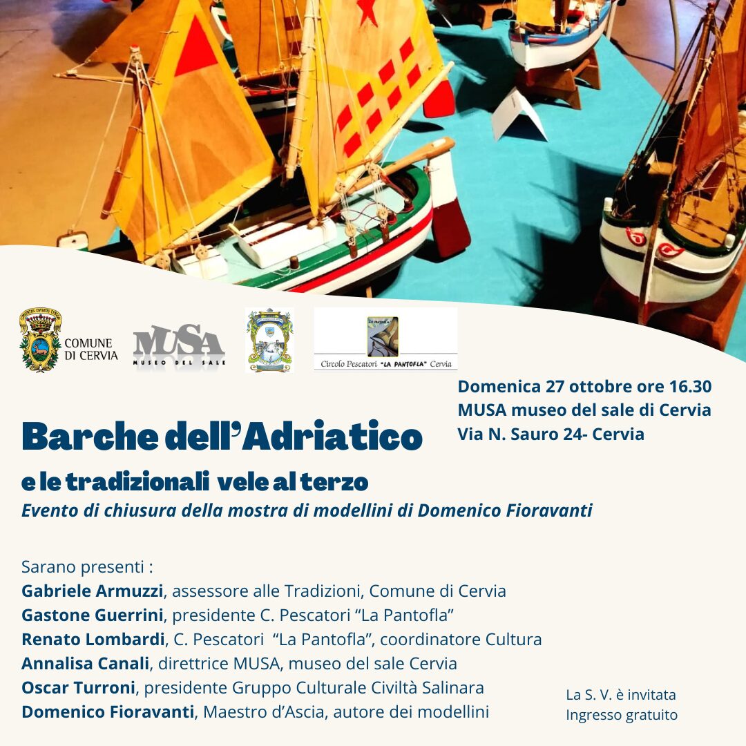 Domenica 27 ottobre alle ore 16.30 al museo si terrà l’evento di chiusura dell’esposizione di modellini in scala di imbarcazioni dalle vele al terzo realizzati dal maestro d’Ascia Domenico Fioravanti.