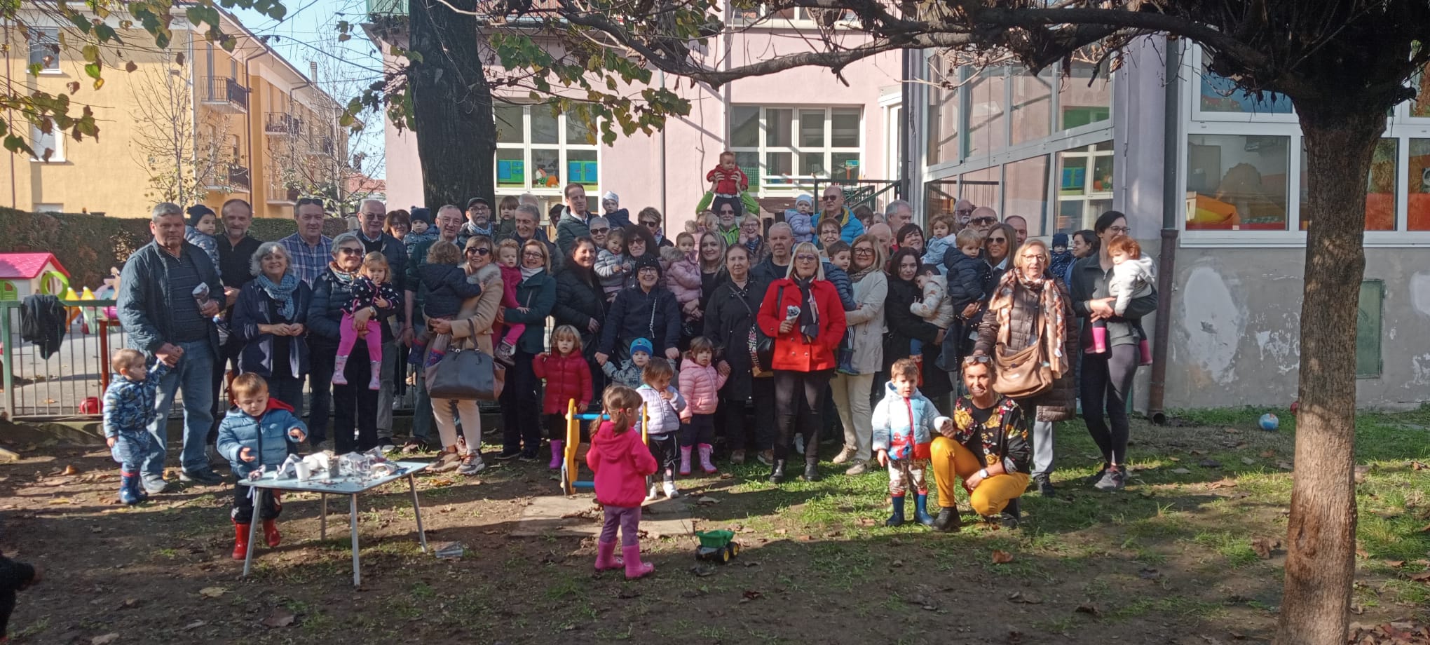 nonni e nipotini, che hanno trascorso la mattinata insieme nel giardino di corso Vittorio Veneto