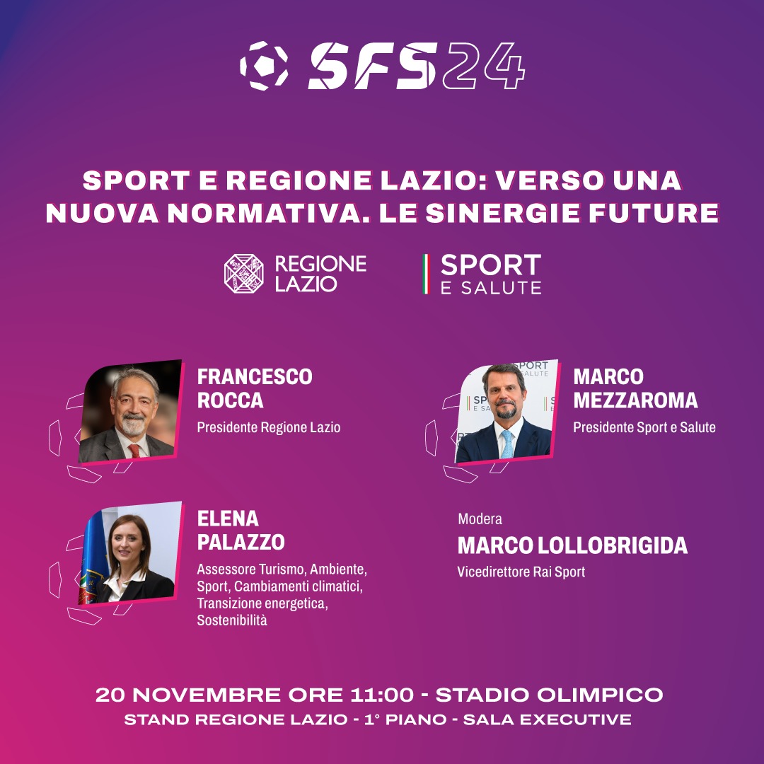 L’incontro vedrà la partecipazione del Presidente della Regione Lazio, Francesco Rocca, del Presidente di Sport e Salute, Marco Mezzaroma, e dell’Assessore regionale Elena Palazzo. A moderare il dibattito sarà Marco Lollobrigida, giornalista di Rai Sport.