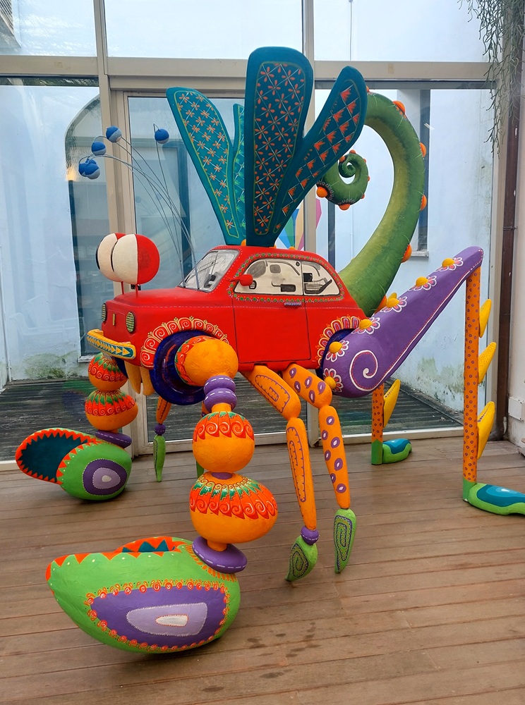 Al piano terra dell’edificio, nello spazio Chiostrina, in collaborazione con l’Ambasciata del Messico in Italia, è ospitata invece l’opera scultorea Cinquecento degli artisti messicani Ricardo Macías e Fernando Gobea, a rappresentare l’amicizia tra Messico e Italia, in occasione proprio delle celebrazioni per il 150° anniversario dei rapporti diplomatici fra i due Paesi. L’opera, realizzata con tecnica mista (legno, ferro, cartapesta e cartone) in stile alebrije contemporaneo (cioè, in forma di un animale “fantastico” e totemico tipico del folclore e della cultura messicana) ha un’altezza di quasi 2,5 metri e una lunghezza di 3 metri, decorata con motivi italiani e messicani in colori acrilici brillanti. Il corpo centrale è rappresentato da una Fiat 500 (auto iconica italiana) sormontata da lunghe ali di libellula con sul retro una imponente coda di camaleonte. Sul davanti due enormi chele di granchio, così come dello stesso crostaceo sono i quattro arti (tre per lato) che insieme alle due zampe posteriori di cavalletta sostengono la scultura sollevata da terra.