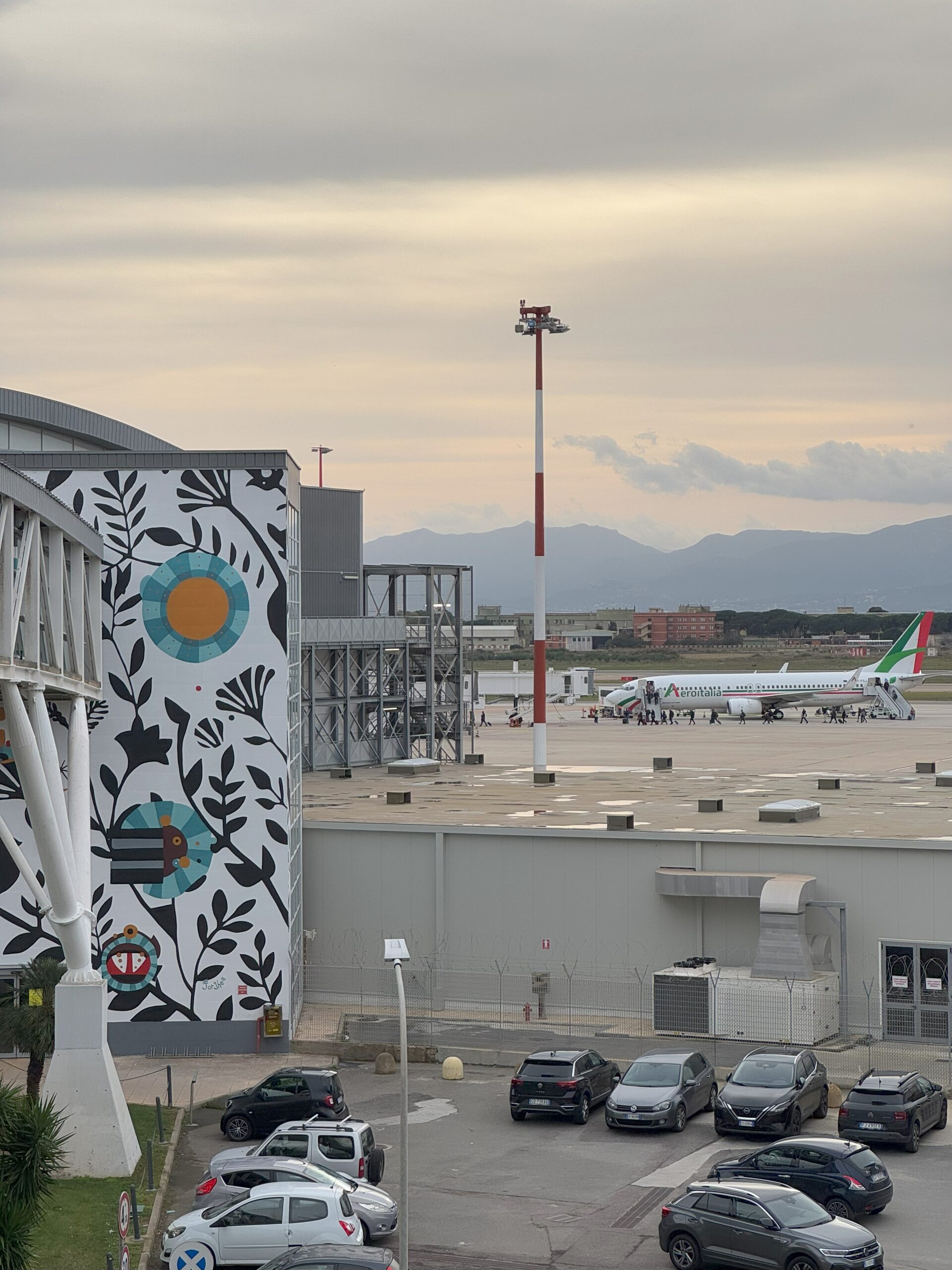 l’aerostazione con l’inconfondibile tratto di un artista sardo che da qui è partito alla