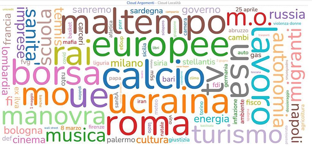 Tra le città primeggia Roma, la capitale, seguita da Napoli da due anni al centro di un rilevante flusso turistico poi Milano, Bologna, Palermo e Firenze. Sul fronte politico c’è equilibrio tra i partiti, oltre a Fratelli d’Italia (FdI) e Partito Democratico (Pd), riescono a ritagliarsi uno spazio FI, M5S e Lega. Premierato e dossieraggio i due temi forti. Grazie alle olimpiadi e le paralimpiadi quest’anno si è parlato anche di altri sport oltre il calcio: basket, atletica. Il tennis è stato uno degli argomenti clou grazie ai successi di Sinner. Tra i temi economici quello di cui si è parlato più di ogni altro è il caso “Stellantis”, molto meno nel 2024 di PNRR. Diminuito ma comunque presente il “Superbonus” e il confronto sull’ex-Ilva mentre cresce l’interesse per l’inflazione. L’anno appena concluso ha visto anche un ritorno significativo di interesse per la cultura con “Cinema” e “Teatro” che rientrano nelle parole più ricorrenti sui media. Tra gli evengreen “ambiente”, “meteo”, “clima”. 25 aprile, 1 maggio e 8 marzo le celebrazioni che hanno gudagnato maggiore spazio. Quest’ultima fortemente legata al tema della violenza sulle donne che nonostante la grande visibilità di alcuni omicidi come quello di Giulia Cecchettin, ha trovato meno spazio rispetto allo scorso anno. Tra i temi e le parole negative ma che comunque hanno uno spazio “garantito”, mafia, camorra, droga.
