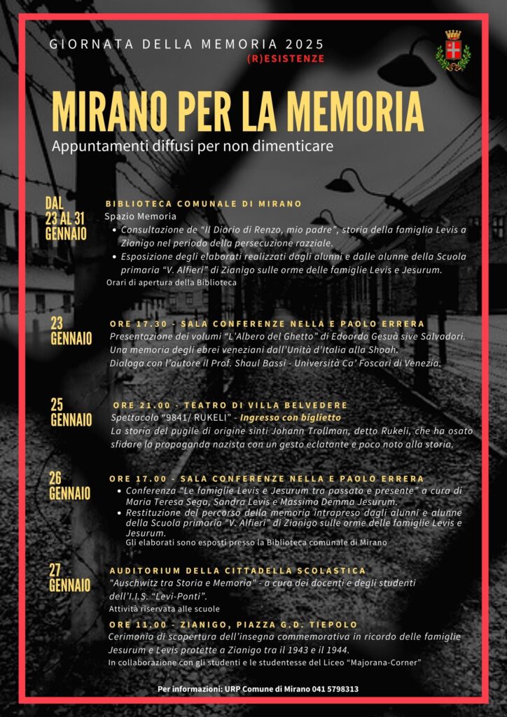 “Mirano per la memoria” è il titolo del programma con cui il Comune di Mirano onora il Giorno