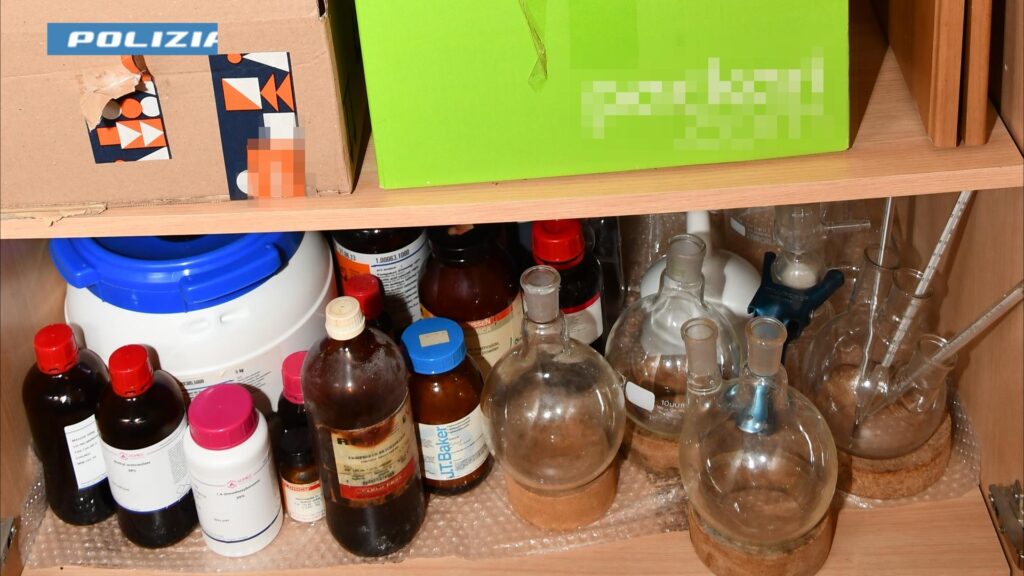 Gli investigatori lo hanno quindi raggiunto nella città friulana e rintracciato proprio presso l’Ateneo dove stava frequentando le lezioni. La successiva perquisizione, eseguita presso il suo domicilio, ha consentito di rinvenire un nuovo laboratorio clandestino per la produzione di droghe sintetiche oltre ad una notevole quantità di precursori. Venivano inoltre rinvenuti un impianto di distillazione, un microscopio scientifico, una grossa cappa aspira fumi – necessaria per evitare che l’odore prodotto dalla cottura delle sostanze si diffondesse attirando l’attenzione dei vicini -, oltre a dosi di Ketamina ed a francobolli imbevuti di LSD.
