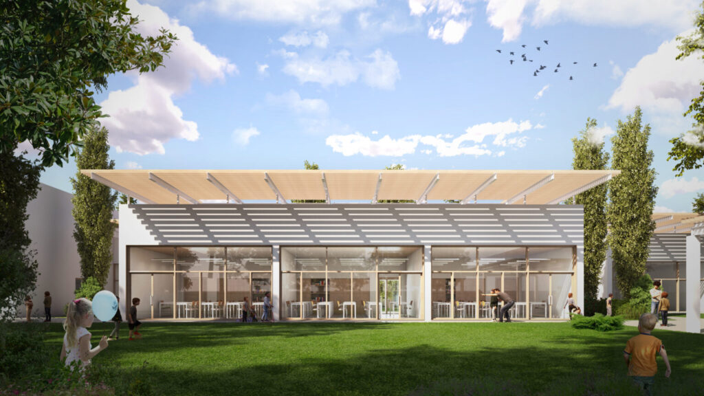 La nuova scuola primaria “Fai Bene” è stata progettata e strutturata in modo da favorire l’inclusione e sviluppare la valenza di edificio vocato ad un impiego collettivo in favore della comunità, ripensando le logiche tradizionali di progettazione delle strutture scolastiche. L’obiettivo è quello di offrire una scuola in grado di proporsi da un lato come un ambiente accogliente per i cittadini, dall’altro come un punto di incontro in grado di favorire lo scambio intergenerazionale. Il plesso, infatti, non si configura solamente come un luogo per l’apprendimento e per la formazione degli studenti, ma anche come uno spazio aperto e flessibile in cui potersi ritrovare e comprendere l’importanza di crescere e di far parte di una comunità unita. Gli ambienti didattici sono stati pensati in modo da stimolare l’interazione, lo scambio e la socializzazione tra i più piccoli. In particolare, la configurazione delle aule e delle aree comuni consente ad ogni studente di partecipare attivamente alla vita scolastica, promuovendo un coinvolgimento diretto e un senso di appartenenza.