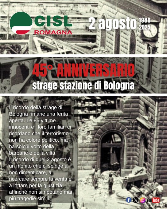 (AGENPARL) - Roma, 3 Agosto 2025(AGENPARL) – Sun 03 August 2025 *Strage di Bologna, Barbera (Prc): “Dalla CISL Romagna un intervento a