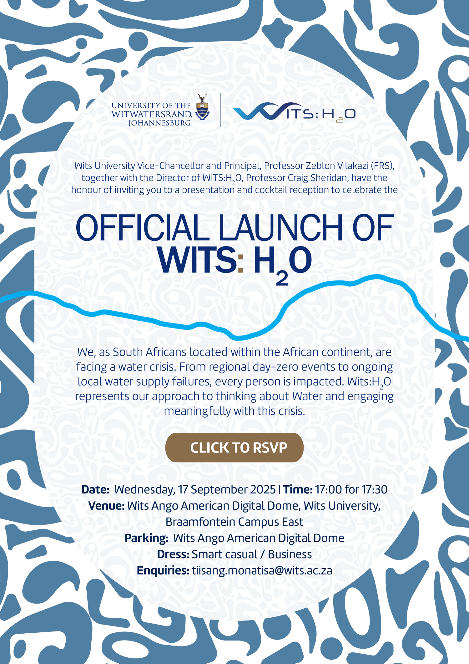 Please join the University of the Witwatersrand as we launch the Wits: H2O centre.