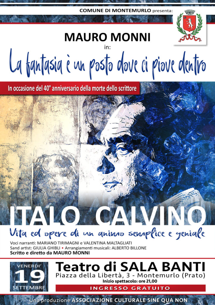 “La fantasia è un posto dove ci piove dentro”, a Montemurlo al teatro della Sala Banti (piazza della Libertà) venerdì 19 settembre ore 21 Mauro Monni porta in scena il suo nuovo spettacolo dedicato a Italo Calvino nel quarantennale della morte avvenuta nel 1985. Un viaggio alla scoperta di quel mondo meraviglioso immaginato e raccontato dalla penna geniale e innovativa che ha reso Calvino uno dei pilastri della cultura italiana.