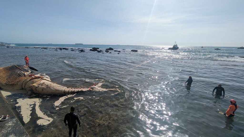 Livorno, 17 settembre 2025 (ore 16.00) – Con l’ausilio della Protezione Civile Provinciale stanno proseguendo le operazioni in via d’urgenza della ditta Neri insieme al nucleo di sommozzatori dei Vigili del Fuoco, coordinate dal Comune di Livorno, per portare a mare la carcassa della balena che si è spiaggiata la notte scorsa alla Terrazza Mascagni. E’ cominciato il tentativo di traino verso la banchina 12 del Porto, dove è attesa dalla ditta bettarini per il sollevamento e dalla ditta Petracchi, soggetto specializzato per sezionare e smaltire la carcassa secondo le procedure di legge. Gli operatori stanno valutando se il tentativo di traino è effettivamente valido.