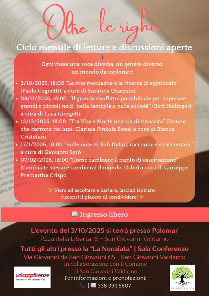 (AGENPARL) – Wed 24 September 2025 *Al via il ciclo di incontri culturali “Oltre le righe” a San Giovanni