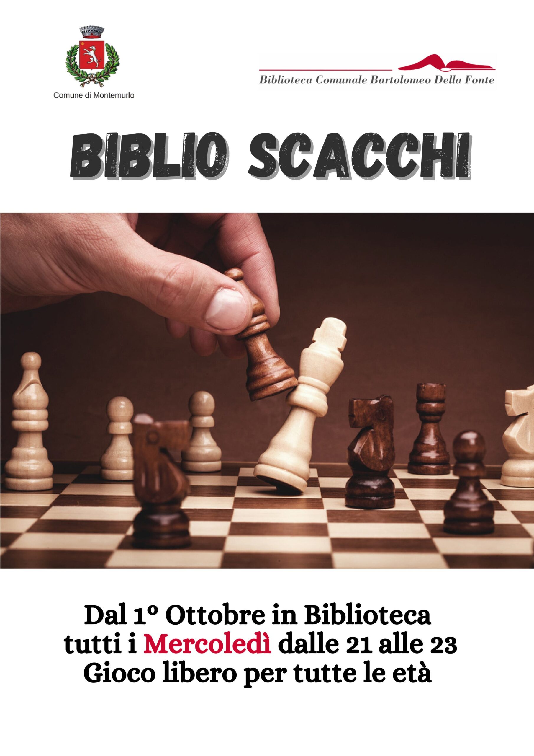 Dopo la pausa estiva, da domani, mercoledì 1 ottobre ore 21, in occasione dell’apertura serale, alla biblioteca “Bartolomeo Della Fonte” (piazza Don Milani, 1) ritorna “Biblio scacchi”, la bella iniziativa di alfabetizzazione al gioco degli scacchi e, per coloro che già conoscono le regole del gioco, di socializzazione e condivisione di un momento di divertimento. Grazie alla collaborazione del montemurlese Andrea Stanzani, appassionato di scacchi, il Comune di Montemurlo ogni mercoledì sera dalle ore 21 alle 23 invita tutti ad avvicinarsi a questo gioco. La partecipazione è assolutamente libera e gratuita ed è destinata a persone di tutte le età. In biblioteca sarà allestita una sala con tutto il materiale necessario per iniziare giocare.