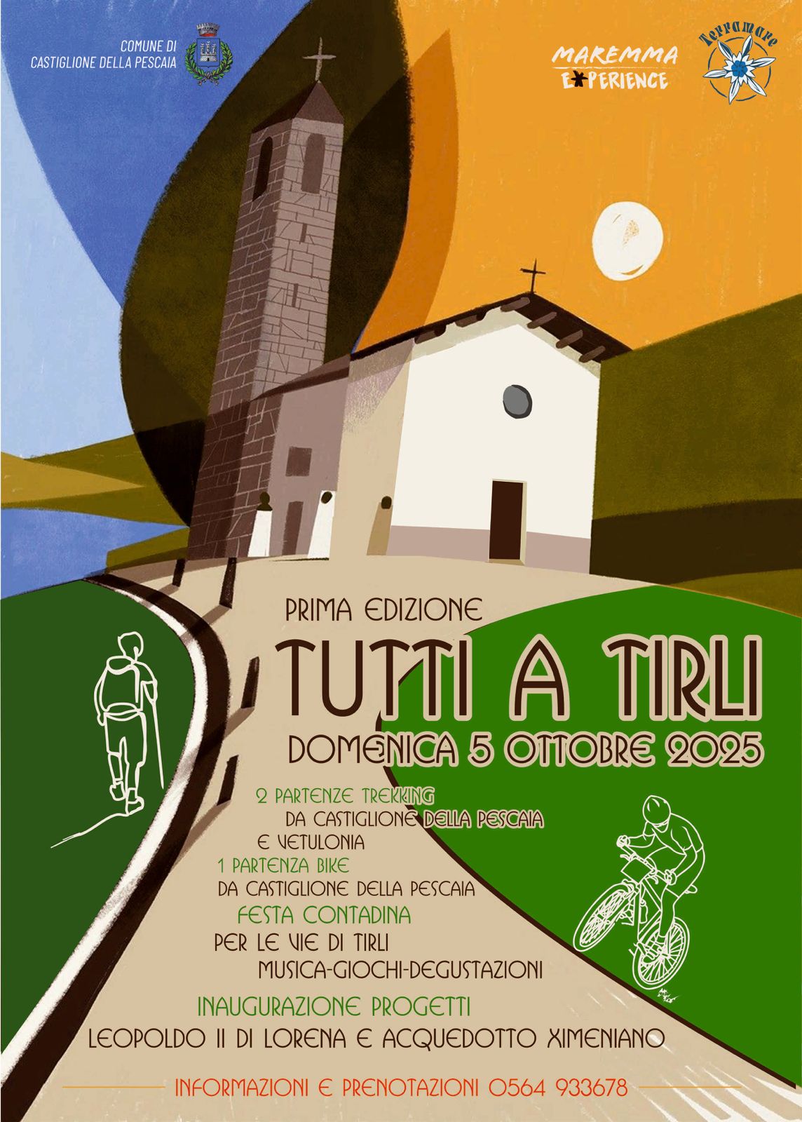 È la prima edizione di “Tutti a Tirli!”, ideato dal Comune di Castiglione della Pescaia in collaborazione con l’Associazione Terramare e il Consorzio Maremma Experience per vivere il territorio godendo della bellezza dei suoi paesaggi e la ricchezza delle tradizioni locali, a piedi o in sella alla bici.