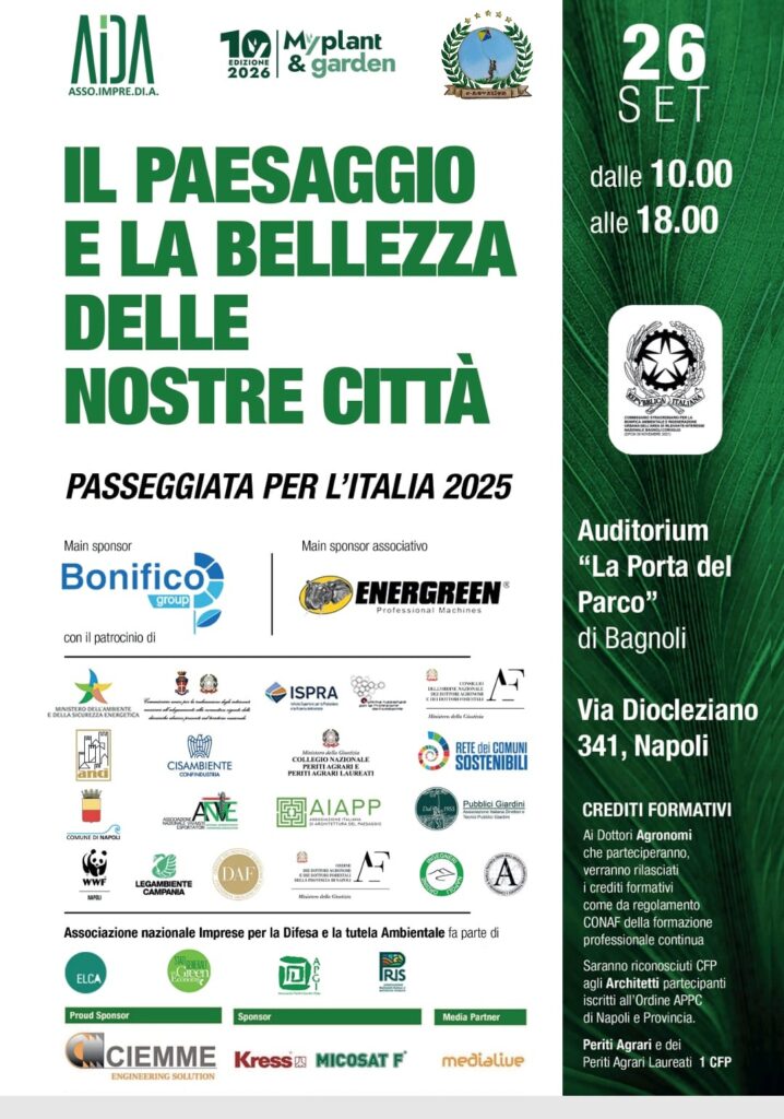 Si è conclusa con successo la tappa napoletana della “Passeggiata per l’Italia” ideata da ASSO.IMPRE.DI.A. per ragionare nel Paese di Ambiente e Paesaggio con le declinazioni sulla Salute delle Città e sulla Bellezza che vuol dire avere cultura del Verde Pubblico, dei Parchi e dei Giardini Storici. “Partirei da questa ultima espressione – ha puntualizzato Massimo Lucidi Presidente della Fondazione e-novation – per mettere il verde non come semplice ornamento, ma elemento centrale della progettazione urbana e architettonica delle città, per questo si parla oramai di infrastrutture verdi”. E in effetti i tanti professionisti, agronomi, architetti, ingegneri e paesaggisti che hanno profittato dell’incontro, tenutosi nella splendida cornice di Porta del Parco, a Bagnoli, anche come occasione di crediti formativi, hanno sostenuto l’idea che progettare col Verde richiede formazione continua e confronto internazionale. Elementi fondativi del patto di sistema che Assoimpredia porta avanti, da primo sindacato datoriale, nel panorama delle imprese private del settore.