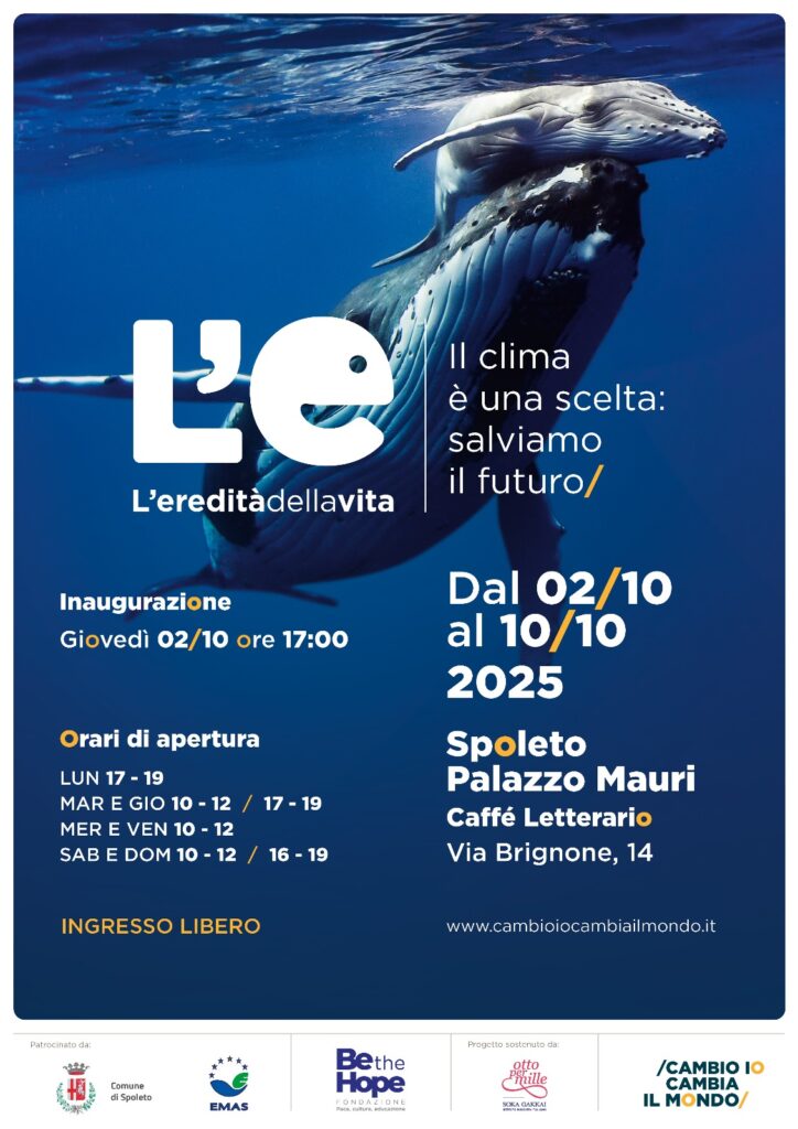 Si chiama “L’eredità della vita. Il clima è una scelta: salviamo il futuro” la mostra patrocinata dal Comune di Spoleto che inaugurerà domani, giovedì 2 ottobre alle ore 17.00 al Caffè Letterario di Palazzo Mauri.