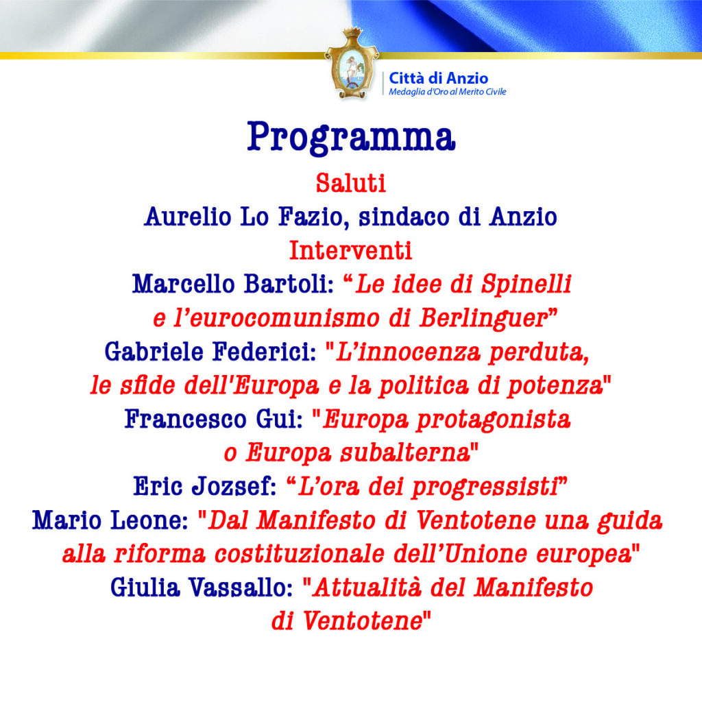 (AGENPARL) – Thu 02 October 2025 L’Europa di Spinelli e le sfide future, incontro il 9 ottobre ad Anzio