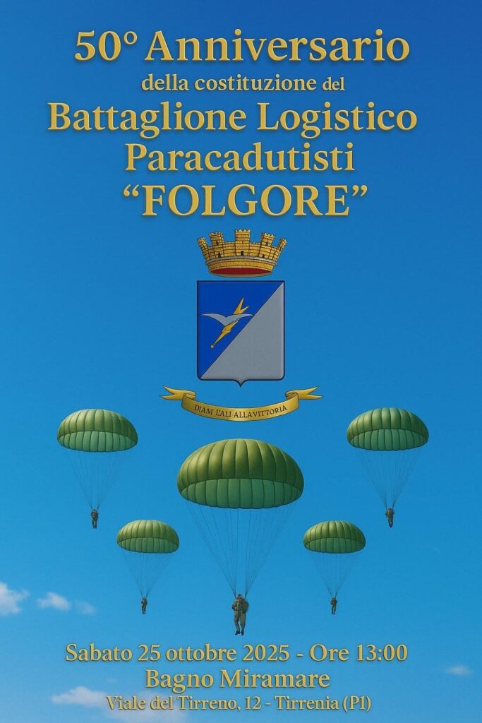 Il 1° ottobre 2025 segna una data di profondo significato per le Forze Armate italiane: il cinquantesimo anniversario della fondazione del Battaglione Logistico Paracadutisti “Folgore”. Nato a Pisa nel 1975, questo reparto ha rappresentato per mezzo secolo la spina dorsale, spesso invisibile ma sempre decisiva, della Brigata Paracadutisti “Folgore”.