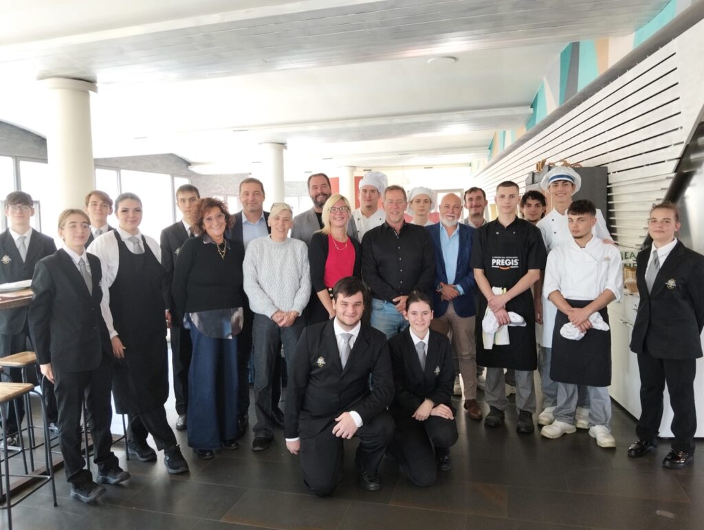 Nel ristorante di Porto San Rocco in particolare si alternano gli studenti del terzo e quarto anno, che imparano sul campo le varie mansioni, e che hanno preparato un pranzo alla Giunta comunale di Muggia, scegliendo in autonomia il menù, che privilegia prodotti stagionali e del territorio.