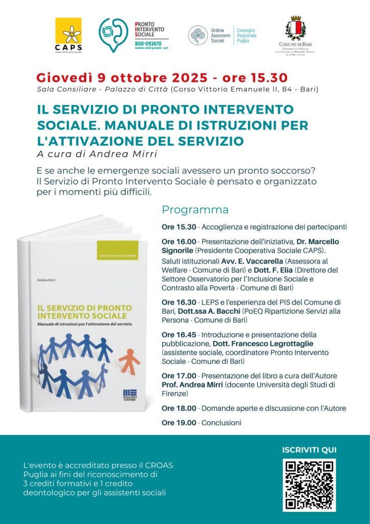 (AGENPARL) – Wed 08 October 2025 DOMANI IN SALA CONSILIARE LA PRESENTAZIONE DEL VOLUME “IL SERVIZIO DI PRONTO INTERVENTO SOCIALE”