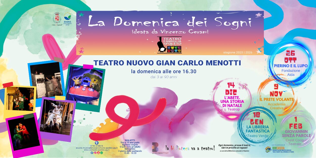 Torna al Teatro Nuovo “Gian Carlo Menotti” l’appuntamento con la rassegna di Teatro Famiglia “La domenica dei sogni”, ideata da Vincenzo Cerami per promuovere l’amore per il teatro tra le giovani generazioni.