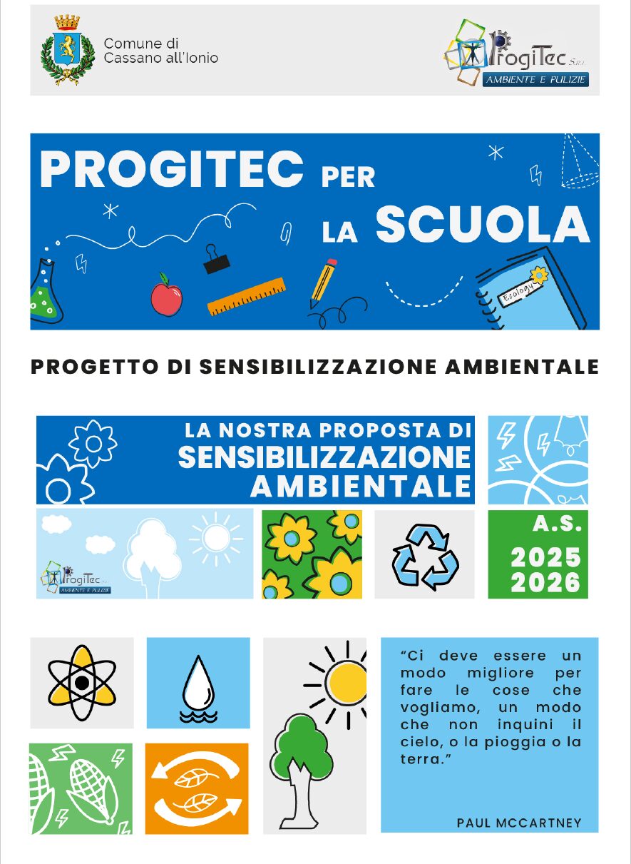 Dal 13 al 17 ottobre 2025, tutte le scuole primarie dell’Istituto Comprensivo “Lauropoli, Sibari, Cassano Jonio” saranno protagoniste di un’importante iniziativa di educazione ambientale e civica, promossa dall’Amministrazione comunale guidata dal sindaco Gianpaolo Iacobini, in collaborazione con la Progitec Srl Ambiente e Pulizia, azienda che gestisce il servizio di raccolta dei rifiuti sul territorio, e l’Istituto comprensivo “Lauropoli, Sibari, Cassano Jonio”. Il progetto mira a sensibilizzare gli studenti sull’importanza del rispetto dell’ambiente e della salvaguardia dell’ecosistema. Durante i laboratori programmati, i bambini verranno introdotti alle regole della raccolta differenziata, scopriranno cosa succede ai rifiuti una volta riciclati e riceveranno informazioni pratiche e utili per contribuire attivamente, anche in famiglia, alla tutela del pianeta.
