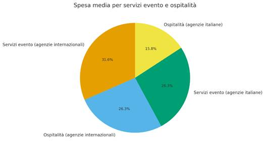 Le agenzie internazionali investono in media 900 euro a persona per i servizi e 750 euro a notte per l’ospitalità, mentre le agenzie italiane registrano una spesa media rispettivamente di 750 e 450 euro. I dati confermano il valore economico elevato del mercato degli eventi privati di alta gamma in Italia.