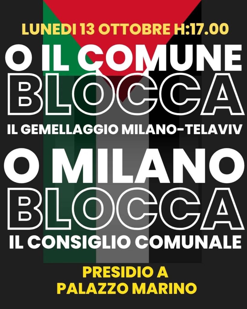 blocco del gemellaggio Milano-Tel Aviv che dovrà far posto alla stipula del