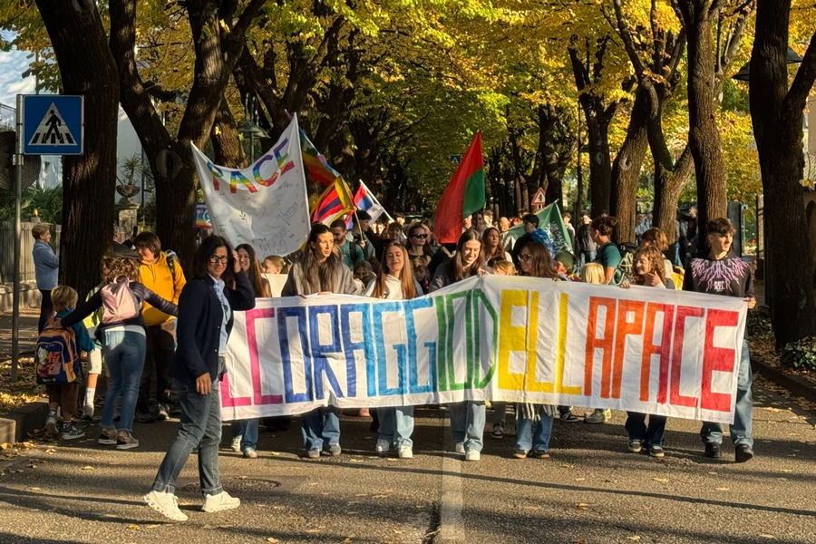 «Una manifestazione dal titolo eloquente: “Il coraggio della pace” -ha detto il sindaco Alessio Zanoni, il primo a prendere la parola dal palco di piazza della Costituzione, dove gli interventi sono stati moderati dalla consigliera Mercadante, presente ieri in rappresentanza di Riva del Garda alla marcia Perugia-Assisi- perché oggi ci vuole davvero coraggio per parlare di pace. Parlare di pace significa essere liberi: liberi di pensare e di agire per un bene superiore, quello dell’umanità intera, e non solo di una parte. Significa sapere che per parlare davvero di pace bisogna schierarsi con i popoli, con tutti i popoli che soffrono a causa delle guerre. E il coraggio che serve nasce proprio da questo: dal dover scegliere di stare non con i governi, non con i potenti che comandano, ma con le persone che soffrono, con chi non ha difese e non può difendersi. Questo è il coraggio della pace: la capacità di condividere le sofferenze di ogni popolo costretto, dai propri governi, a sottomettersi alla guerra. Oggi è più facile fare la guerra che costruire la pace. Pensiamoci: nei nostri rapporti quotidiani è più facile dire “con quella persona non ci parlo” che dire “con quella persona voglio costruire un dialogo”. È tremendamente più facile fare la guerra. La scuola, oggi, qui con voi, rappresenta un ponte di pace. La scuola è il luogo della storia, perché nella scuola si costruisce la storia del futuro. È nella scuola che una società civile pone le basi per l’abbraccio con l’altro. La scuola non insegna, non forma: la scuola costruisce: ponti, dialogo, umanità. Costruisce il domani».