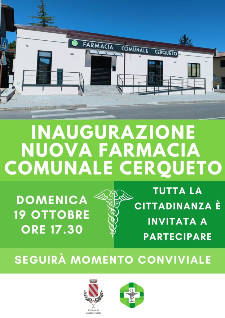 * Domenica 19 Ottobre ore 17.30 Inaugurazione della Nuova Farmacia