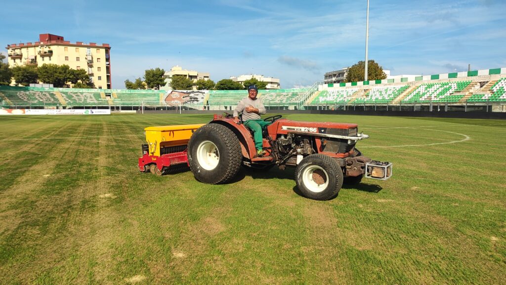 La risemina rappresenta l’ultimo passaggio del percorso di recupero e consolidamento del terreno, finalizzato a restituire al manto erboso compattezza, uniformità e piena funzionalità. Da oggi i lavori stanno proseguendo sotto la cura e la supervisione dell’azienda De Grecis, specializzata nella manutenzione di impianti sportivi.