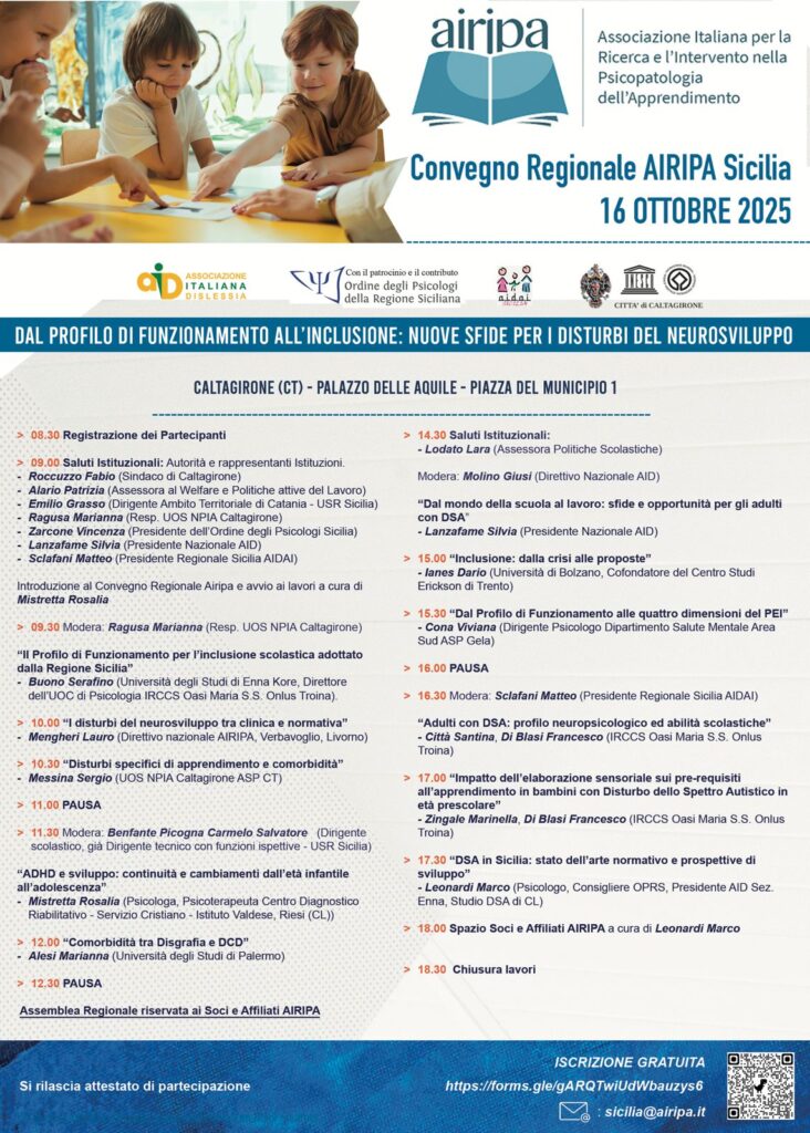 Com. Psicopatologia dell’apprendimento: giovedì 16 ottobre, al municipio, convegno regionale Airipa Sicilia sul tema “Dal profilo di funzionamento all’inclusione, nuove sfide per i disturbi del neurosviluppo”
