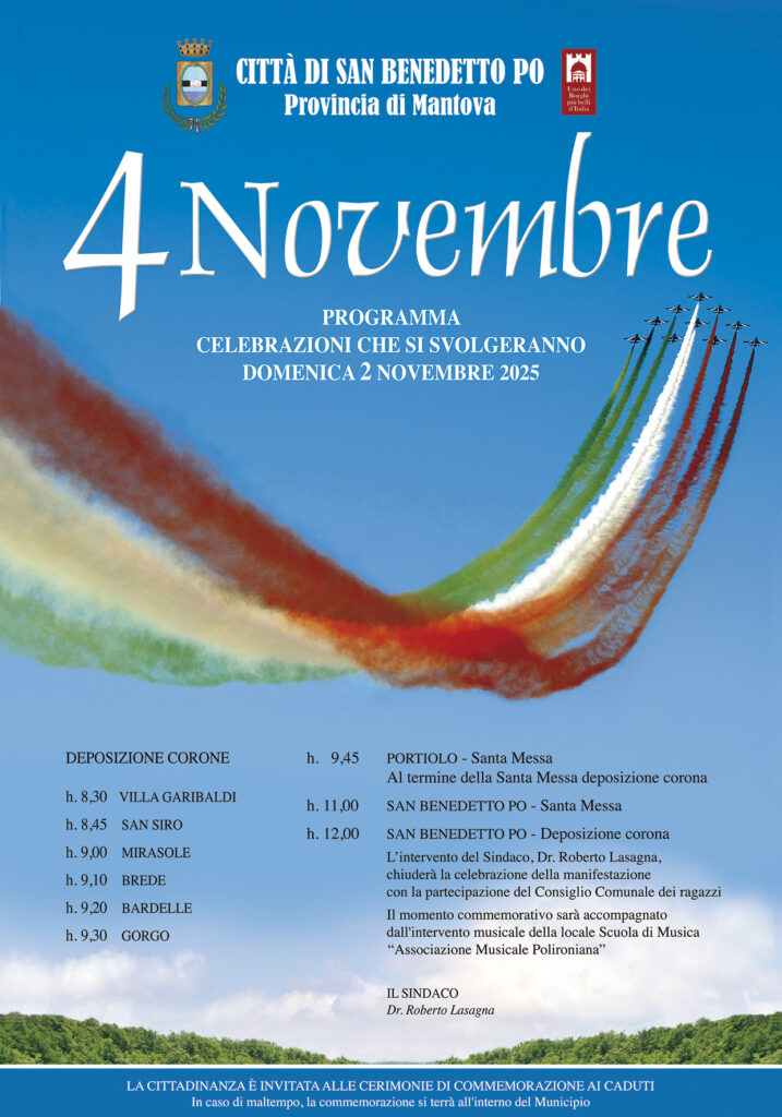 In caso di maltempo, la commemorazione si terrà all’interno del Municipio.