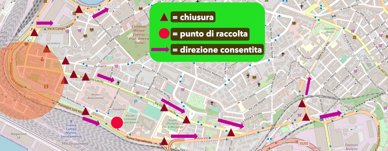 veicolare nelle vie interessate dall’area di sicurezza ricompresa nel raggio di 468 metri lineari dal