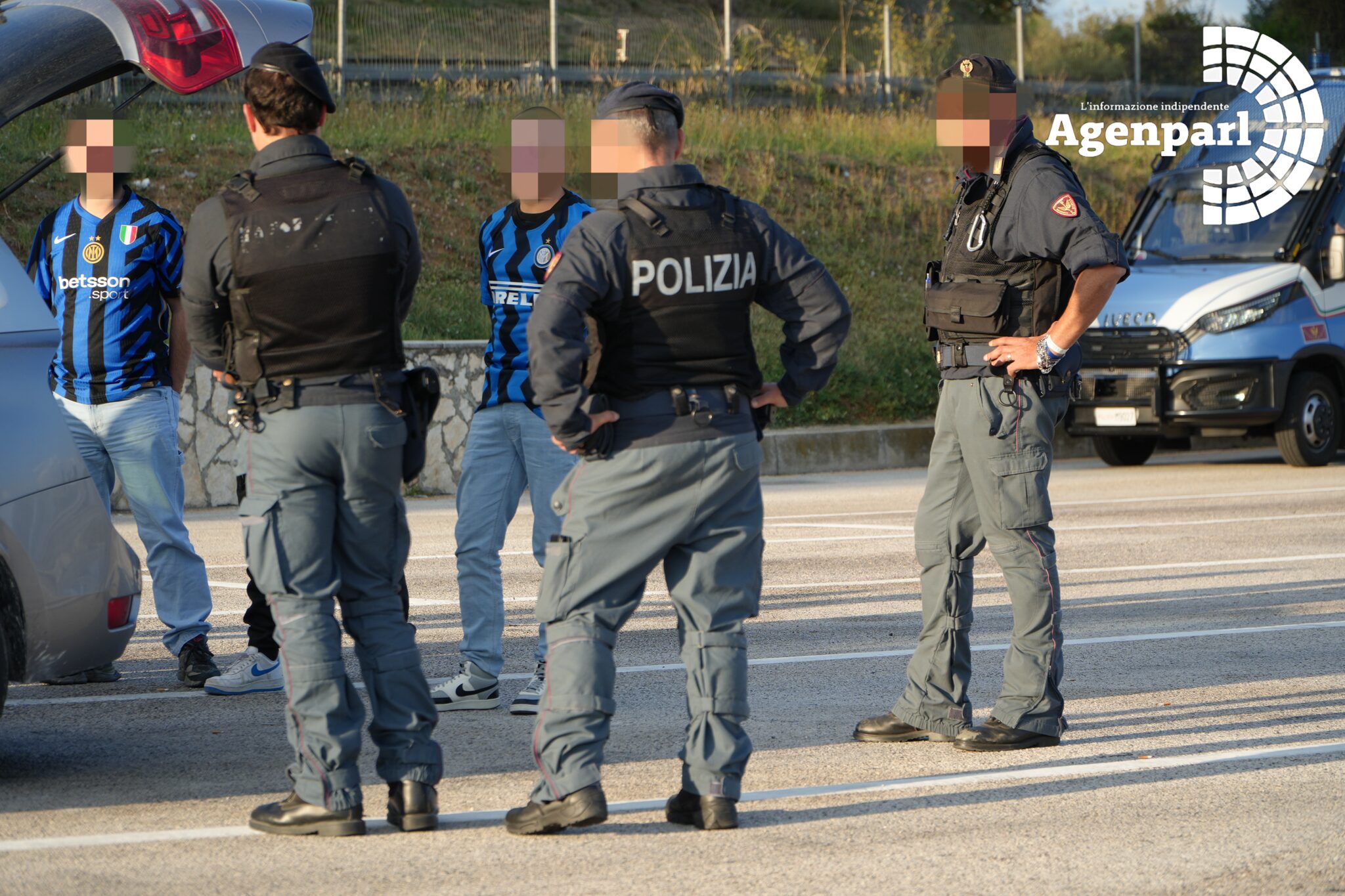 I poliziotti hanno effettuato verifiche su numerosi pullman, van e auto private provenienti da Milano e dal Nord Italia, con a bordo tifosi interisti diretti allo Stadio. I controlli hanno riguardato striscioni, bandiere, manici delle bandiere, zaini e vetture, oltre ai documenti d’identità e ai biglietti della partita, che ogni tifoso ha dovuto esibire prima di ripartire.