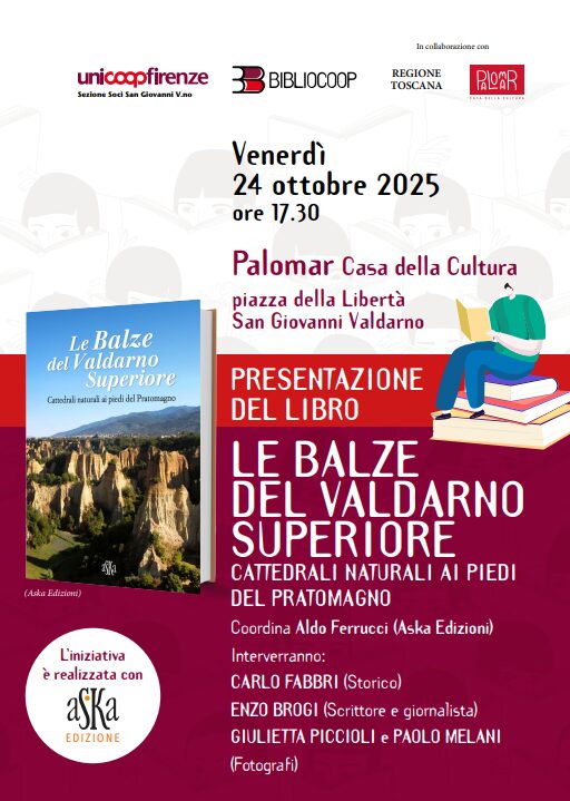 Venerdì 24 ottobre alle 17,30 nella sala David Sassoli di Palomar, Casa della cultura, sarà presentato il libro “Le Balze del Valdarno Superiore. Cattedrali naturali ai piedi del Pratomagno”, un’opera che racconta uno dei paesaggi più suggestivi della Toscana.