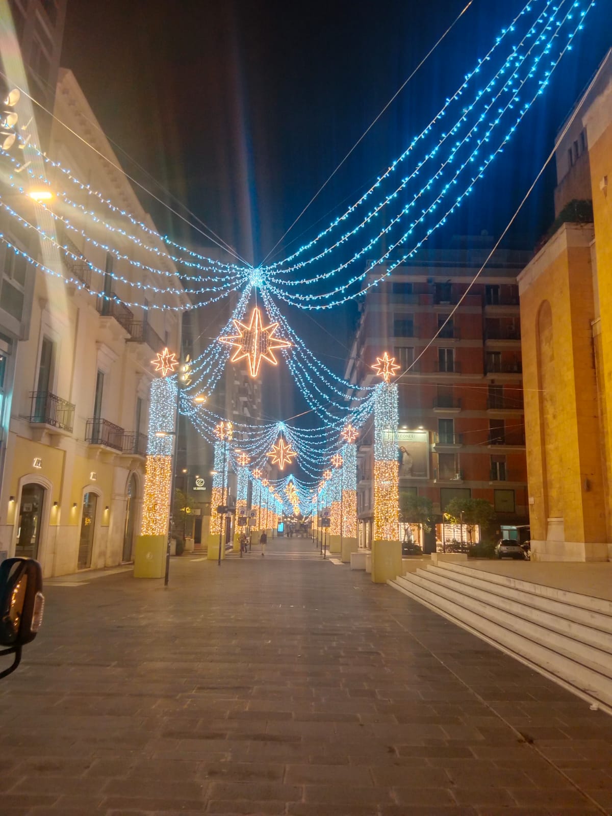 Nel dettaglio, in via Sparano sono state posizionate complessivamente 56 colonne luminose con drappeggi e pali, finanziate dall’accordo quadro in corso e da due sponsorizzazioni autorizzate dalla giunta comunale, Acmei Sud s.p.a. e ditta Paulicelli: entrambe si sono impegnate a installare un allestimento composto da nove colonne luminose tridimensionali.