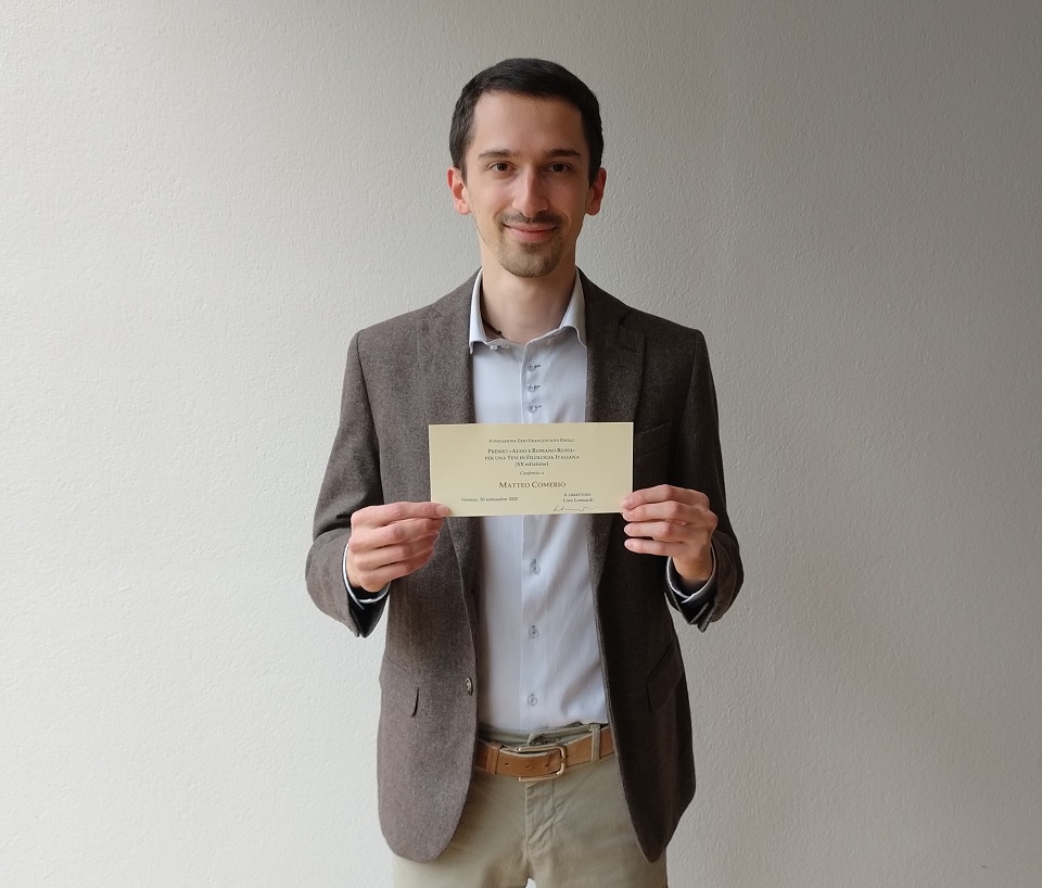 FILOLOGIA ITALIANA, A MATTEO COMERIO IL PREMIO NAZIONALE