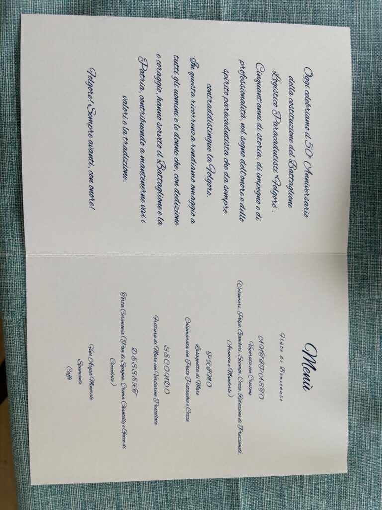 Nel corso del pranzo, dopo i saluti introduttivi, ha preso la parola il Generale Ferdinando Guarnieri, già Comandante del Battaglione e del Reggimento, che con tono ironico e affettuoso ha ricordato i momenti più significativi della vita del reparto e i numerosi colleghi scomparsi.