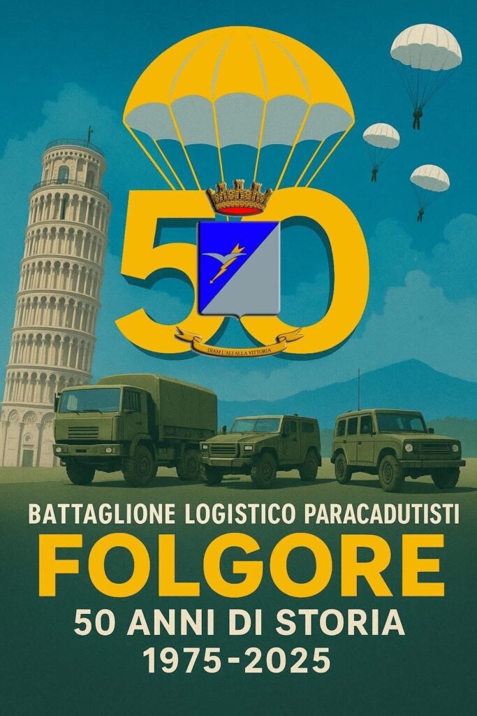 Nato a Pisa il 1° ottobre 1975, il Battaglione Logistico Paracadutisti “Folgore” ha rappresentato per mezzo secolo la colonna portante della Brigata Paracadutisti, garantendo rifornimenti, manutenzione e supporto tecnico nelle condizioni più difficili, in Italia e nei teatri operativi di tutto il mondo.