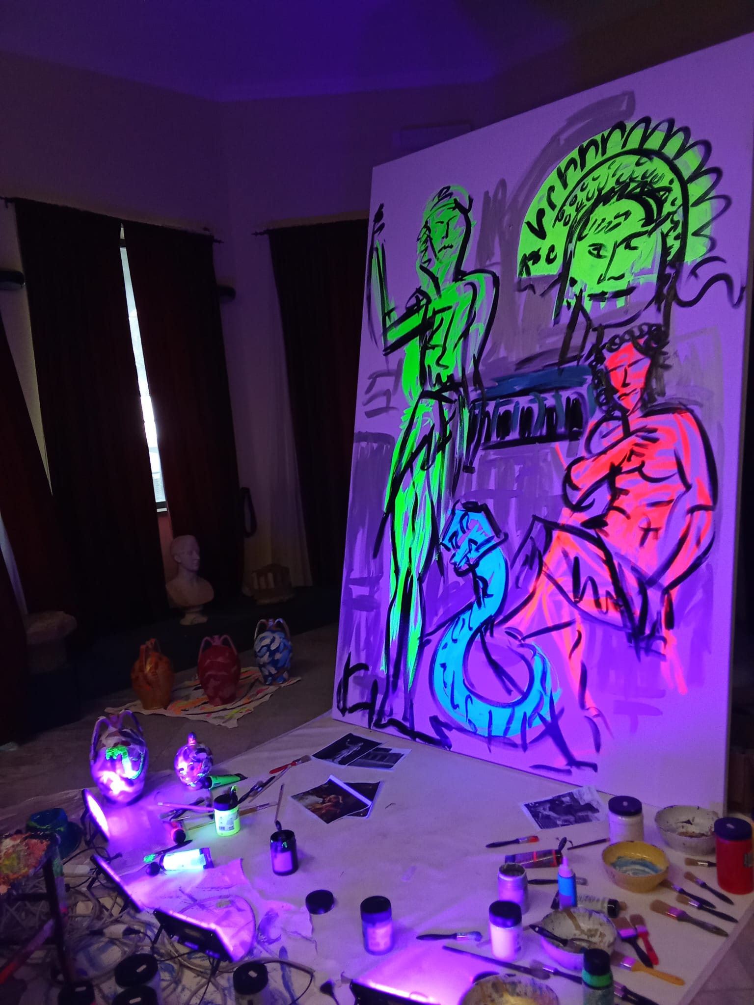 realizzato una grande installazione pittorica dedicata a Dioniso e Giunone