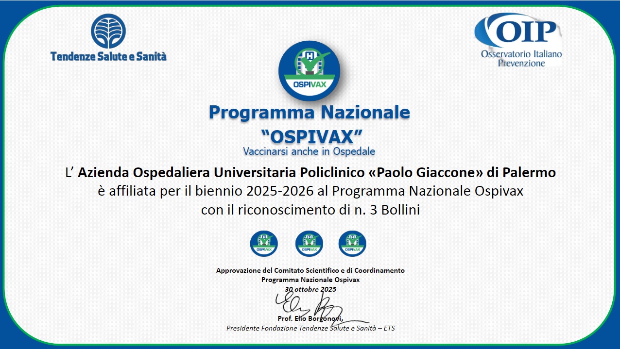 Palermo è affiliata alla Rete ospedali del Programma Nazionale Ospivax, con