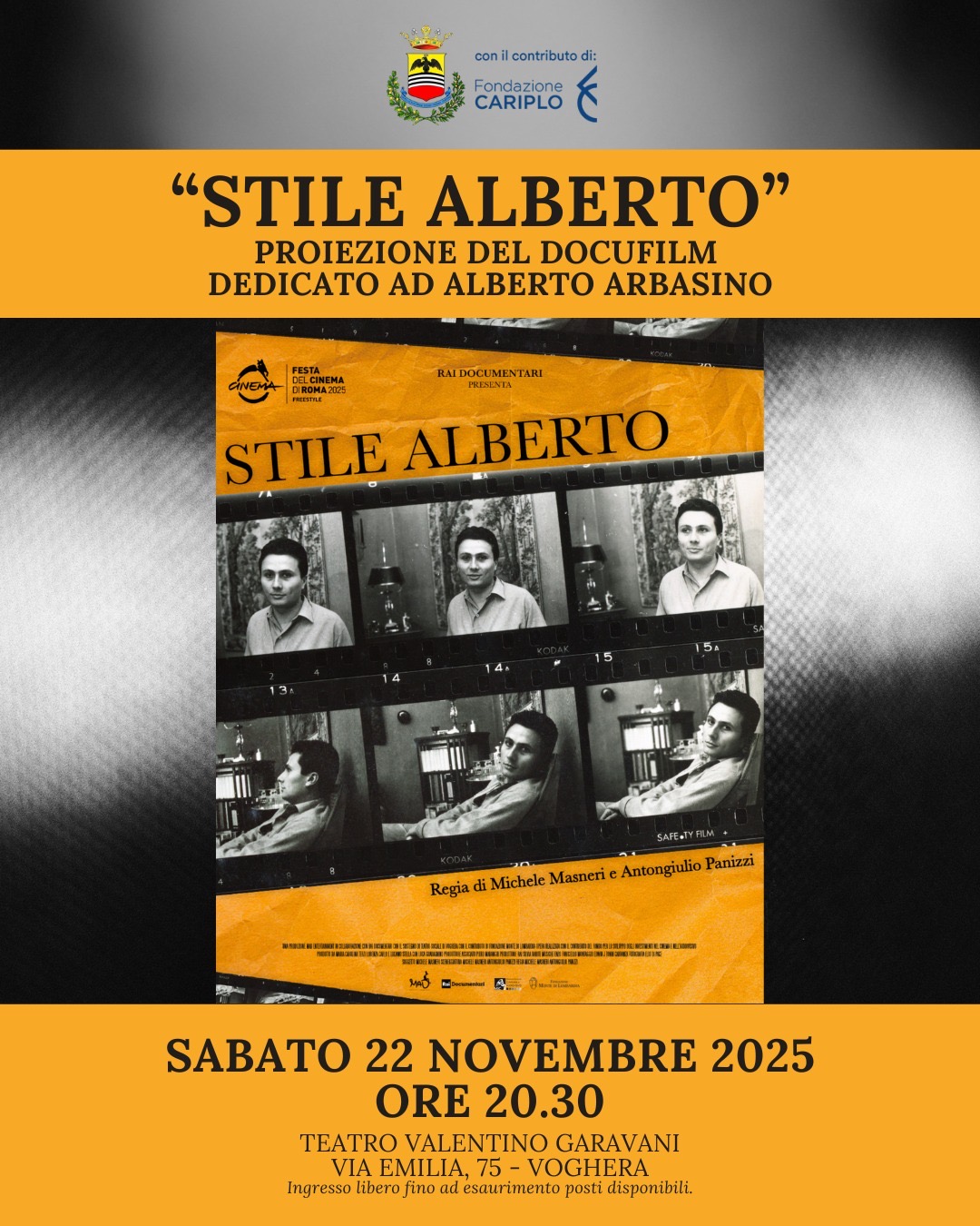 – poter accogliere nel nostro Teatro un’opera cinematografica che celebra Alberto