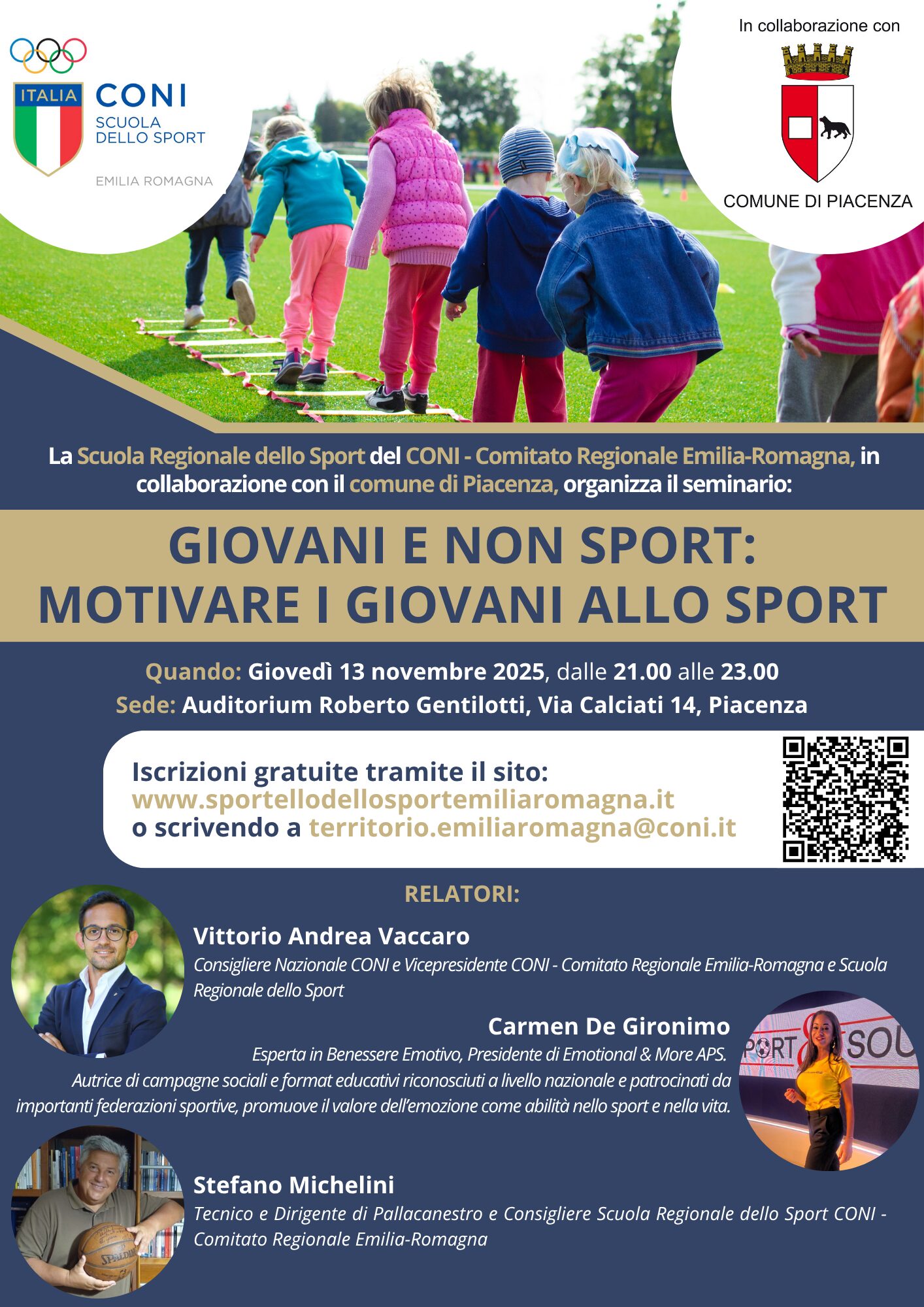 *Oggetto:** “Giovani e non sport”, come motivare i ragazzi alla pratica
